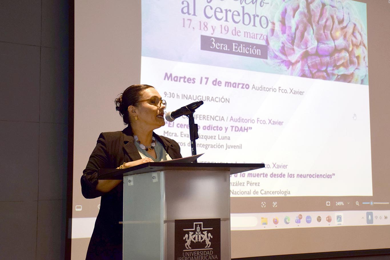 Por su parte, la Dra. Eugenia Morales Rivera, directora del Departamento de Ciencias de la Salud, señaló que esta semana se inscribe en una iniciativa internacional que, cada marzo, promueve la divulgación del conocimiento sobre el cerebro. En este sentido, enfatizó que para la Ibero León sumarse a este esfuerzo implica reafirmar que el conocimiento cobra sentido cuando se comparte y contribuye a comprender mejor la experiencia humana.